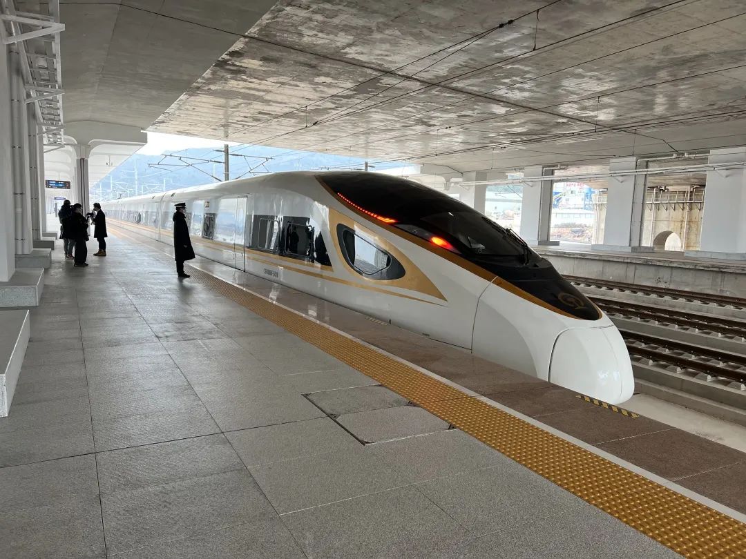 ▲1月8日9点26分,杭台高铁首发列车从台州站驶出