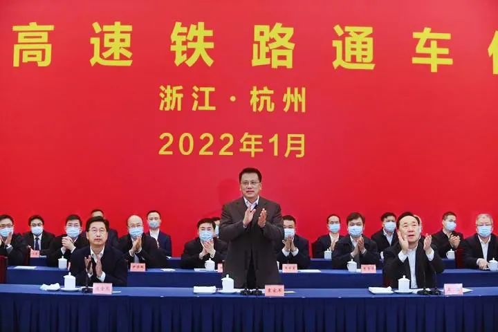 杭台高速铁路通车仪式采用视频连线方式,主会场设在杭州,嵊州新昌站、台州站设分会场。浙江省委书记、省人大常委会主任袁家军在主会场出席仪式并宣布杭台高速铁路开通。
