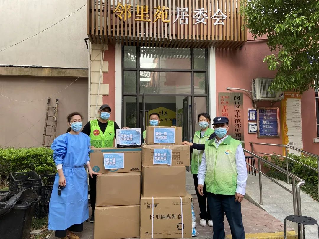▲ “社区驰援”物资送达闵行区邻里苑居委
