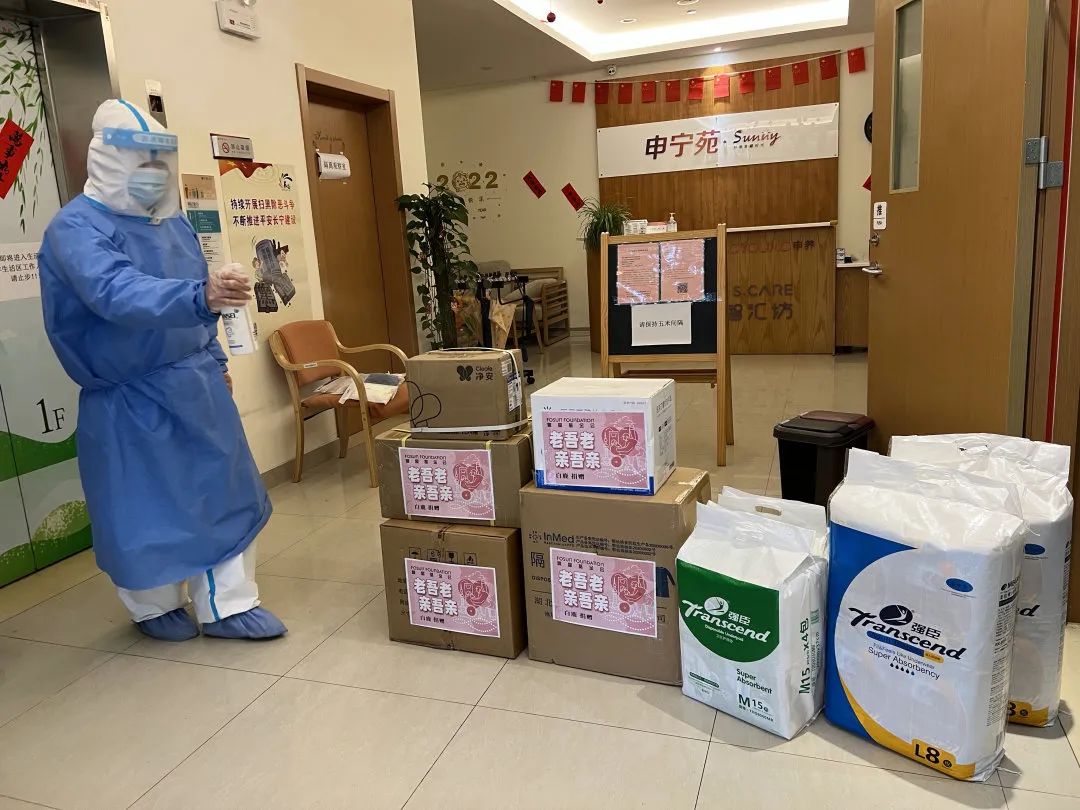 ▲ 长宁区新泾镇长者照护之家收到“老吾老”防疫支持包