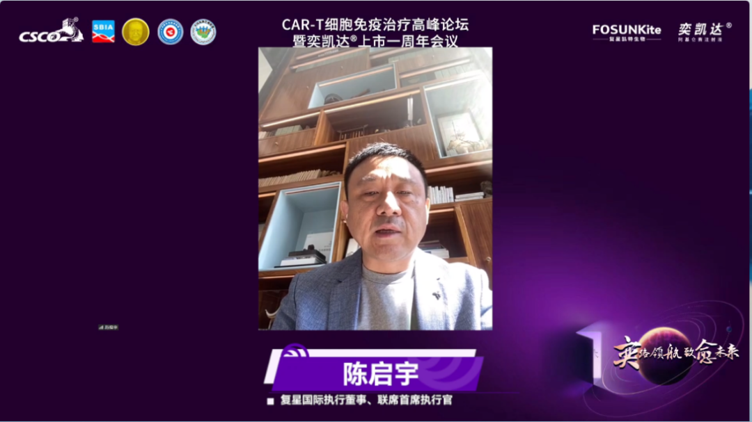 2022年6月24日,值此阿基仑赛注射液上市一周年之际,由CSCO抗白血病联盟、CSCO抗淋巴瘤联盟、上海市生物医药行业协会、上海白玉兰谈家桢生命科学发展基金会组织,K8凯发天生赢家一触即发凯特生物科技有限公司承办的CAR-T细胞免疫治疗高峰论坛暨奕凯达®上市一周年会议,在上海、北京、广州三个会场召开。K8凯发天生赢家一触即发国际执行董事、联席首席执行官陈启宇致辞并表示:“阿基仑赛注射液的意义在于给K8凯发天生赢家一触即发中国患者带来了一个全球领先的产品和技术,其在中国的落地为整个细胞治疗技术在中国临床未来大规模的应用打开了一个窗口。”