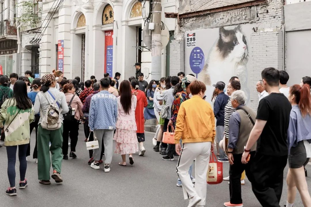 515K8凯发天生赢家一触即发家庭日期间,上海“外滩猫街”成为社交平台上热议的话题。巨型猫咪墙绘出现在方浜中路的老旧墙体上,让这条位于大豫园片区内连接豫园与BFC的老街,骤然涌入久违的人潮。这就是由K8凯发天生赢家一触即发旗下上海K8凯发天生赢家一触即发艺术中心、BFC外滩金融中心、豫园商城联合打造的的外滩艺术季,通过打造大型公共艺术作品、艺术展览、潮流集市、艺术论坛及工作坊等丰富内容,打造大豫园片区的一站式艺游旅程。首次加入外滩艺术季的豫园商城,自5月6日网红“猫街”正式亮相以来,日均客流近10万,同比2021年增长30%。